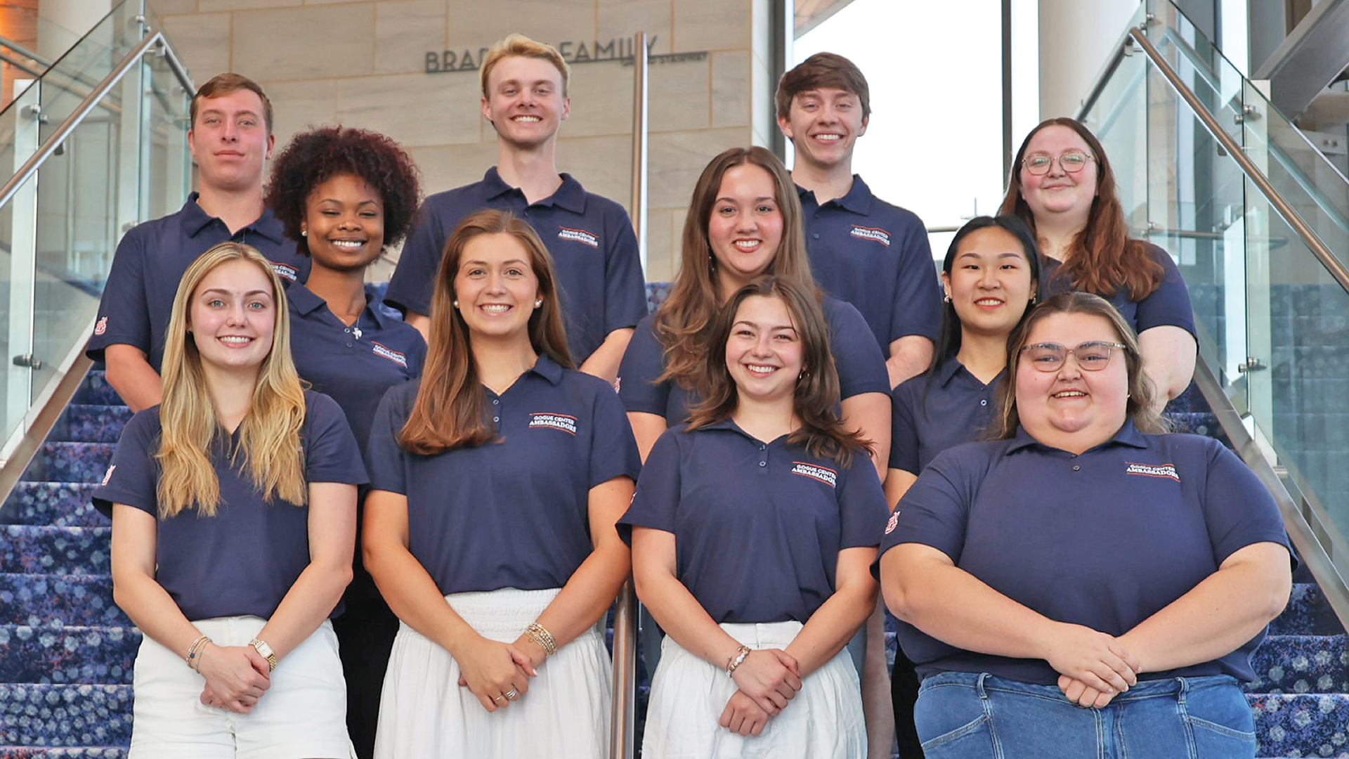 The Gogue Center Ambassadors organization provides a leadership opportunity for Auburn University students dedicated to serving the Jay and Susie Gogue Performing Arts Center. Ambassadors work across campus, within the Auburn community and beyond, acting as hosts and volunteers for Gogue Center-sponsored performances and events.